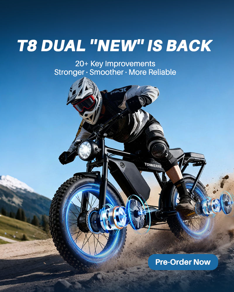 A: Yes. Equipped with 3000W peak power dual motors, 4.0-inch fat tires, dual suspension, and hydraulic brakes, T8 offers strong climbing ability and stability on city roads, gravel, slopes, and uneven surfaces.