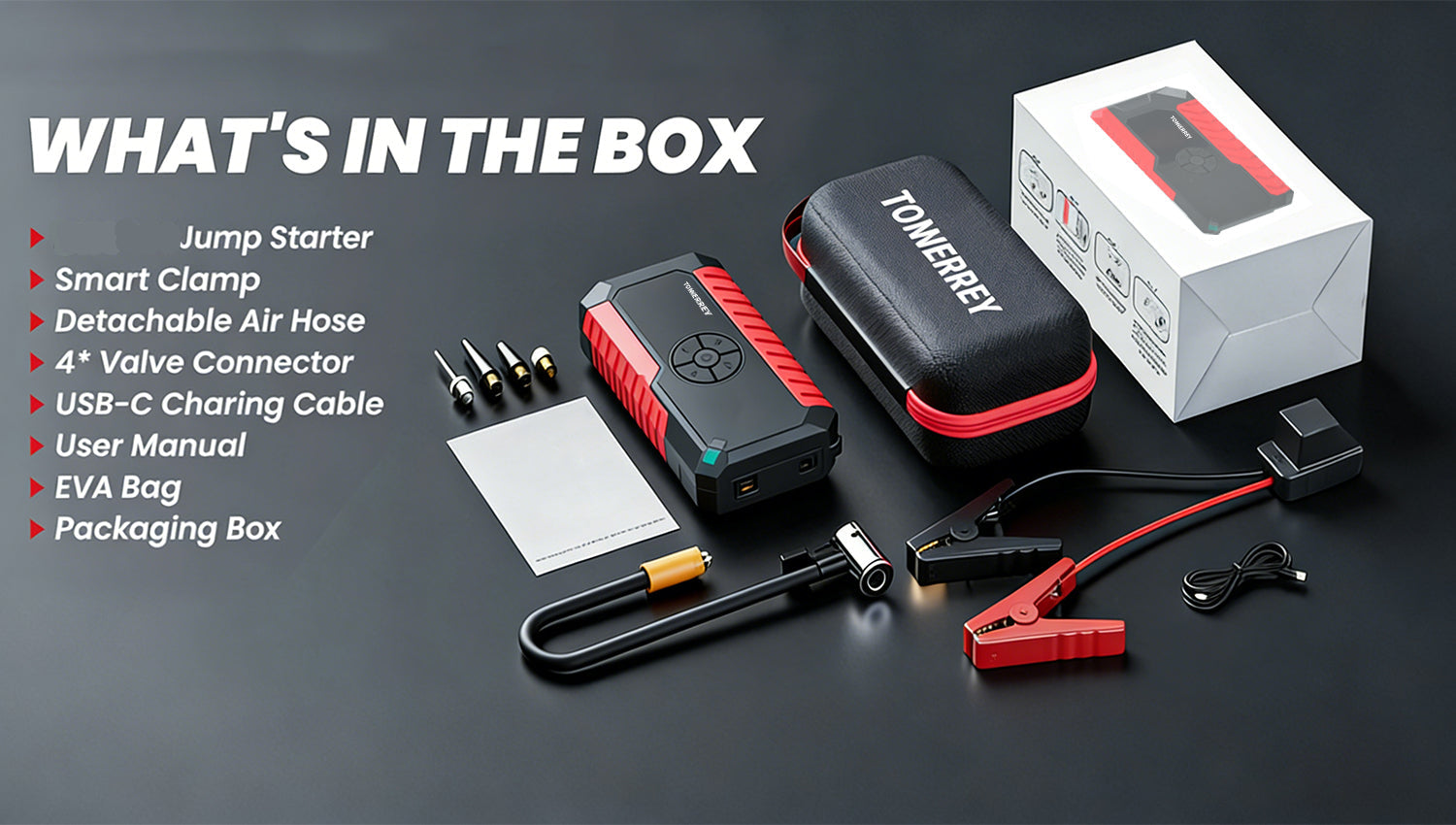• 1 × Portable Jump Starter with Air Compressor